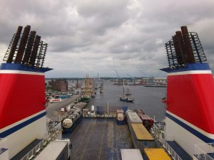 Alles klar bei euch? Das war eine wirklich gemütliche Anreise, ein richtiges Eintauchen! Zuerst Flug Wien – Hamburg, weiter nach Kiel und dann rauf auf die Fähre. Unglaublich, dass in so einem riesigen Ding 500 Lkw und noch jede Menge Pkw und Camper Platz finden. Ein Hauch von Seefahrerromantik versprüht die Ausfahrt aus dem Hafen am Abend unter dunklen Wolken, vorbei an  Schiffen, Booten und Containern – hinaus Richtung Schweden. Ans Bordleben gewöhnt man sich rasch, ist ja auch nicht so kompliziert. Wie im Hotel bezieht jeder seine Kabine (Sagen Sie niemals ”Zimmer” zu ihr!), trinkt ein Bier an der Bar und genießt schließlich das herrliche Büffet-Dinner mit allerlei Fischspezialitäten und schwedischen Gerichten. Und in der Früh landet man ausgeruht und voller Tatendrang in Göteborg. Viel Zeit war dann leider nicht, immerhin so viel, um einen kleinen Überblick über unsere erste Station zu erhalten.